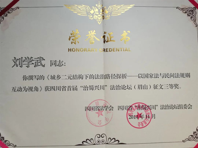 他持续加强理论学习研究,更好地反哺审判工作。学术论文获得四川省首届“治蜀兴川”法治论坛三等奖;获聘“西南医科大学硕士研究生实践指导教师”;作为主研参与国家社科基金项目“重大疫情背景下公共卫生治理法治化实现路径研究”、四川省高级人民法院司法统计重点课题“案件评查存在的问题及解决对策”、泸州市法学会·泸州市社会科学界联合会一般课题“疫情防控常态化背景下健全泸州市公共卫生领域法治保障体系研究”等研究。