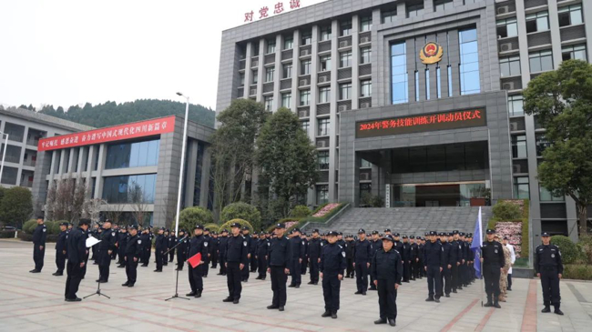 为抓深抓实教育培训工作,进一步夯实民警警务技能基础,提升队伍的履职能力和水平,按照省监狱管理局警务技能训练工作安排部署,3月12日,四川省大英监狱举行2024年警务技能开训仪式,吹响训练强警集结号,掀起实战训练新热潮,不断提升队伍能力素养和实战本领。大英监狱领导班子成员、机关全体民警、监区民警代表,共计150余人参加仪式。