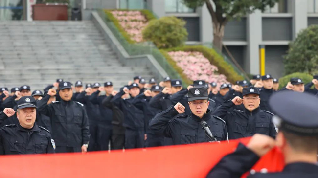 警旗猎猎,警徽熠熠。在莫云鹏的带领下,参训民警面向警旗,高举右拳,重温入警誓词。誓词声铿锵有力,久久回荡,宣示着大英监狱全体民警牢记宗旨使命,忠诚履行职责,勇于担当作为。