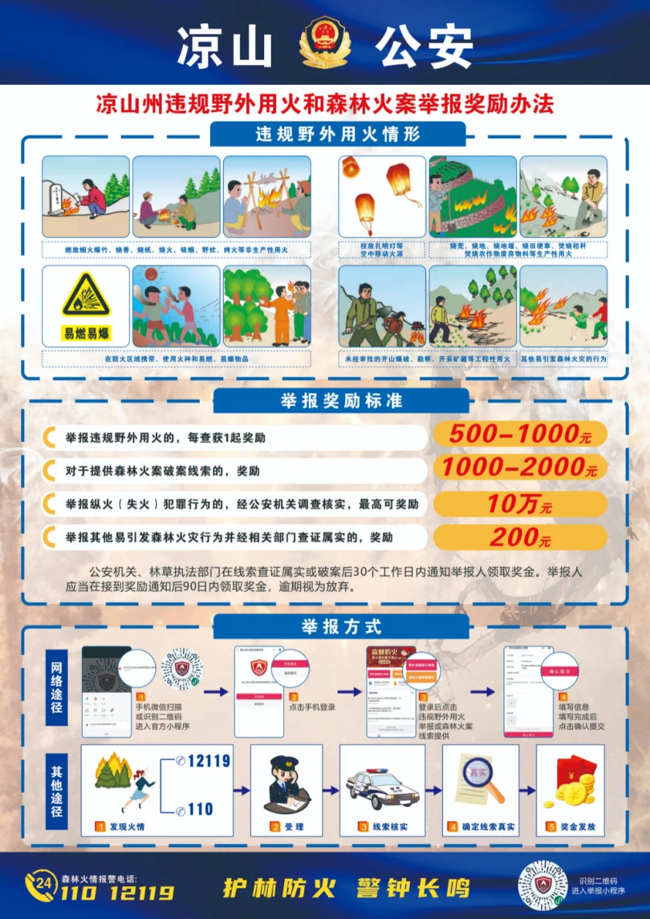 凉山公安始终坚持牢固树立“明火必防、火案必破、防侦并举”的理念,坚定信心,勇挑重担。抓机制健全。建立起联勤联动机制,运用好“派出所+村两委”模式,健全完善“同步上岸”“经费保障”“科技建设”机制,及时排查隐患,提升履职实效。抓队伍夯实。橙红色预警期间全州3159名警力下沉,2387名“一村一辅警”全员上岗,应急侦察队力量进一步充实,做到全面巡防,实现火案全力破、规范破、快速破。抓督导常态。开展全覆盖督导检查,压实责任,确保工作开展取得实效。