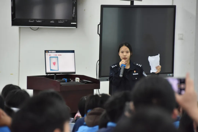 活动现场,民警以“以法为盾,护航青春”为主题,结合近期热点典型案例,直观展示了校园欺凌的表现形式、危害后果、违法成本和预防措施,引导同学们规范自身言行,加强自我保护,对校园欺凌说“不”。