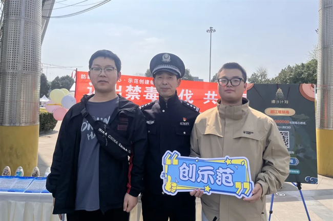 同时,都江堰市公安局禁毒办联合镇(街道)、社工及志愿者在双遗马拉松终点站设置了禁毒签名墙、禁毒网红打卡点和仿真毒品宣传点。马拉松参赛选手纷纷表示:“把名字签上禁毒墙,让心灵‘烙’上禁毒印。”