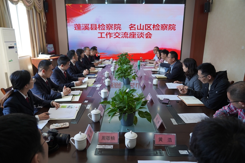 在随后开展的交流会上,名山区检察院党组书记、检察长郝连忠对蓬溪县检察院一行的到来表示热烈欢迎,并详细介绍了名山区检察院在创建全国模范检察院、五强基层院建设中好的经验与做法。双方就检察工作中的热点问题进行了深入探讨,分享了各自在四大检察工作中的经验和心得。