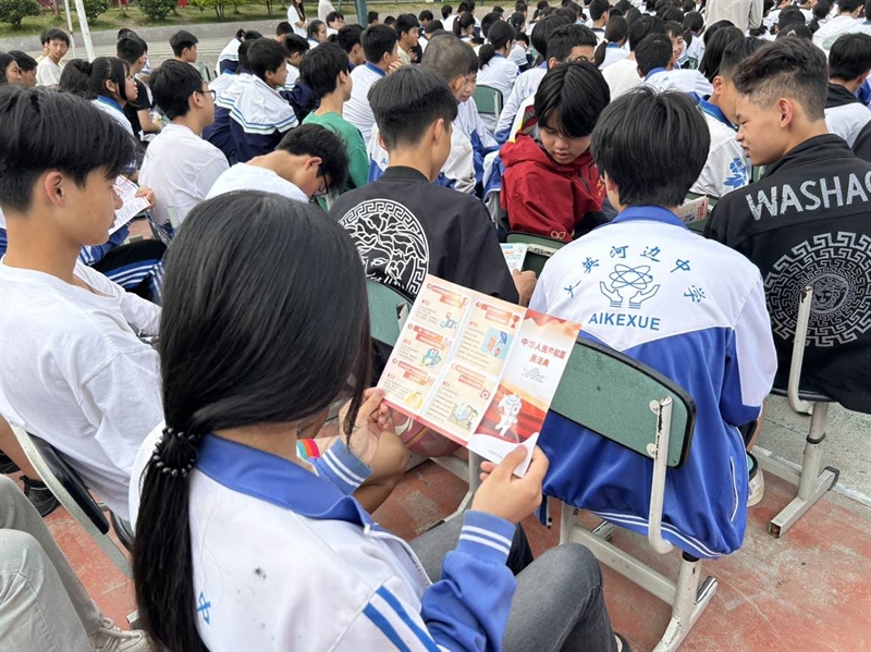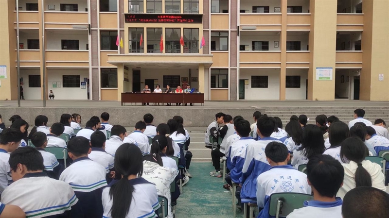 为不断加强对未成年人的《中华人民共和国民法典》宣传教育,增强青少年法治意识,弘扬法治精神,培养法治信仰,5月14日上午,大英河边司法所联合河边法庭、河边派出所、镇社会治理办到河边中学,开展了一堂以“民法典进校园 法律保驾护航”为主题的普法课。
