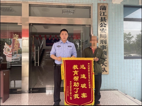 近日,蒲江县公安局刑侦大队的民警收到了一面特殊的锦旗,看着送锦旗的人,民警是一脸懵,因为这是一名到案的犯罪嫌疑人送来的锦旗……