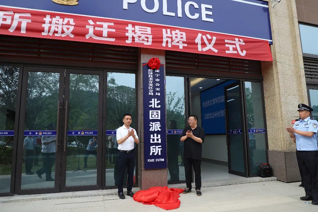 5月17日上午,遂宁经开分局北固派出所举行搬迁揭牌仪式。遂宁经开区党工委副书记、常务副主任谢君环,遂宁市公安局驻局纪检监察组组长、党委委员吴钰,经开区管委会副主任、公安局局长王智斌,市公安局治安支队政委向晓灵,火车站派出所、北固镇政府、广德街道办事处等单位负责人,分局在家局领导以及北固派出所全体民辅警参加此次搬迁揭牌仪式。