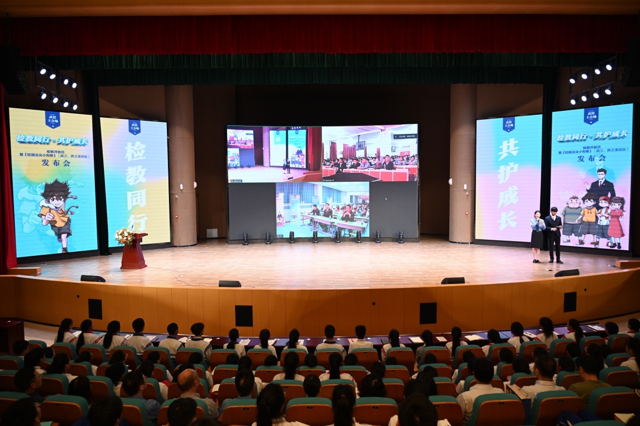 《校园法治小先锋(藏汉、彝汉漫画版)》发布了!5月31日,成都市武侯区检察院联合多家单位开展“检教同行 共护成长”主题检察开放日,该区经典的法治IP《校园法治小先锋》迎来新的版本。活动以成都市礼仪职业中学为主会场,甘孜州白玉县第三完全小学、凉山州昭觉县民族中学为分会场,三地同步发布,700余名师生共同见证。