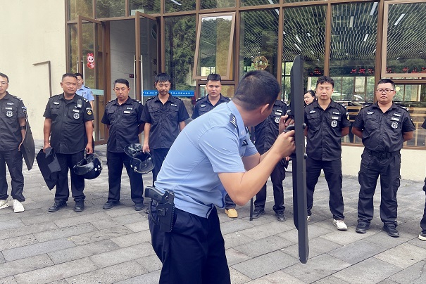 洪雅县瓦屋山作为远近闻名的避暑天堂,随着夏季旅游旺季的到来,吸引了众多游客前来感受其独特的自然风光和清凉的气候。为了进一步提升景区安保队伍的应急处突能力,确保游客的安全与舒适体验,8月25日,洪雅县公安局瓦屋山派出所组织了一场针对景区安保队伍的应急处突技能培训。