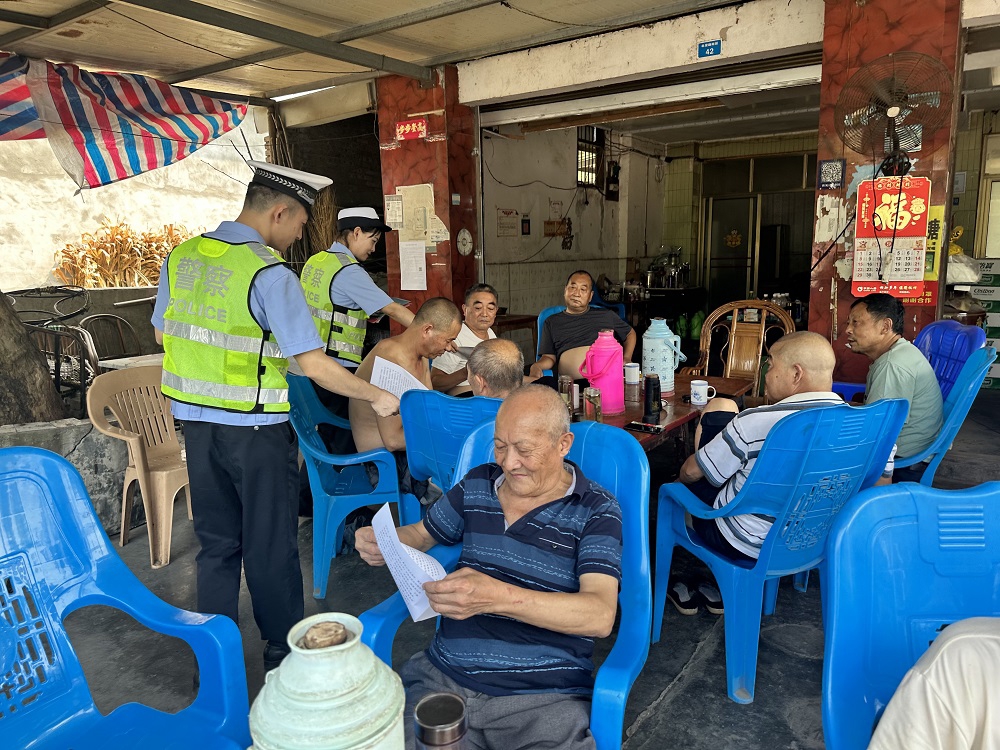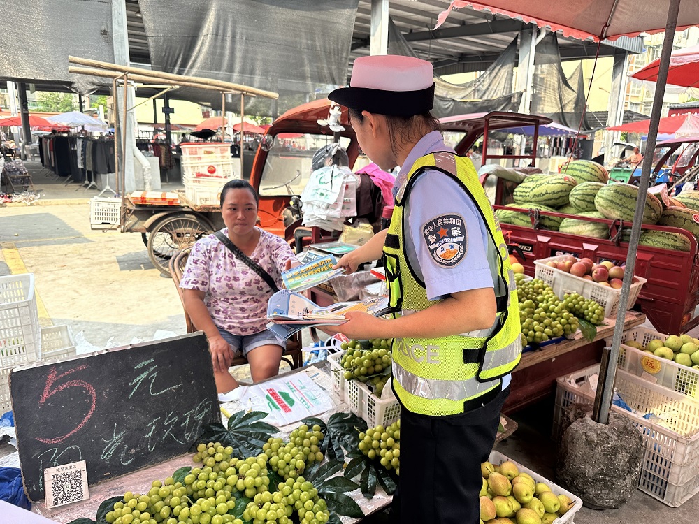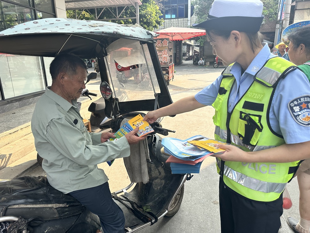 活动中,宣传交警在茶铺和集市等人流密集处,向过往群众发放宣传资料,通过唠家常的方式,讲解三轮车、农用车违法载人的危害,提醒村民日常骑乘电动车、三轮车出行要佩戴安全头盔。并以案说法讲述了交通故事给个人、家庭带来的严重影响,告诫群众要树立文明出行理念、全面提升交通安全意识,严防由于交通安全违法而引发的道路交通事故。
