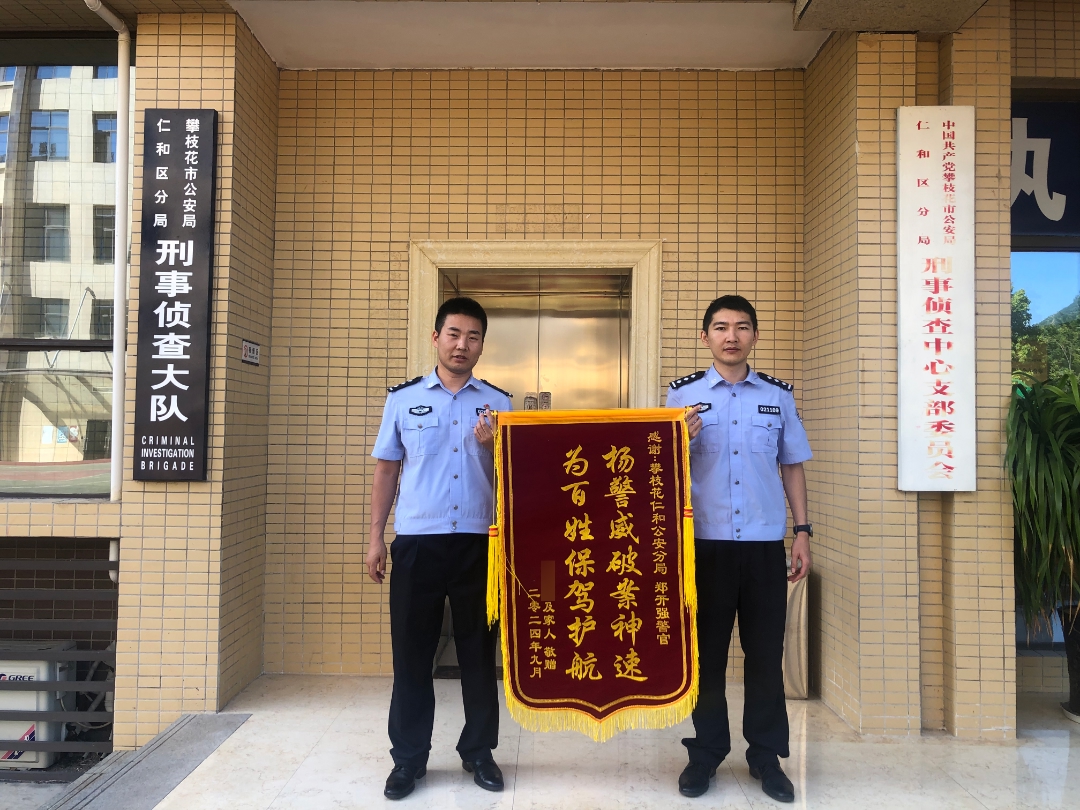 罗某某回到成都后,在收到被骗部分赃款后,心里十分感激,于是便写了一封感谢信和请人制作了一面写有“扬警威破案神速,为百姓保驾护航”的锦旗和寄给攀枝花市公安局仁和区分局刑事侦查中心办案民警郑开强。