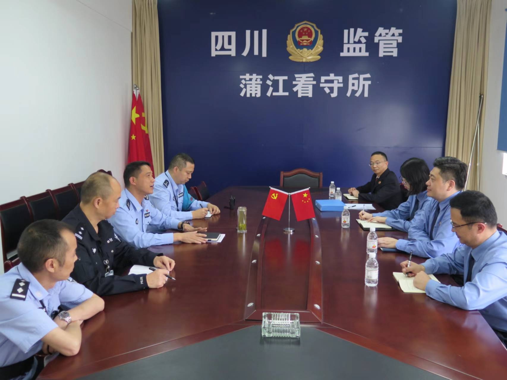为进一步强化监管场所检察监督、提升刑事执行检察工作质效,强化对在押人员的监管,近期,蒲江县检察院与县看守所召开联席会议,县党组书记、检察长李光奇,副检察何春勇及蒲江县看守所所长尹刚等参会。