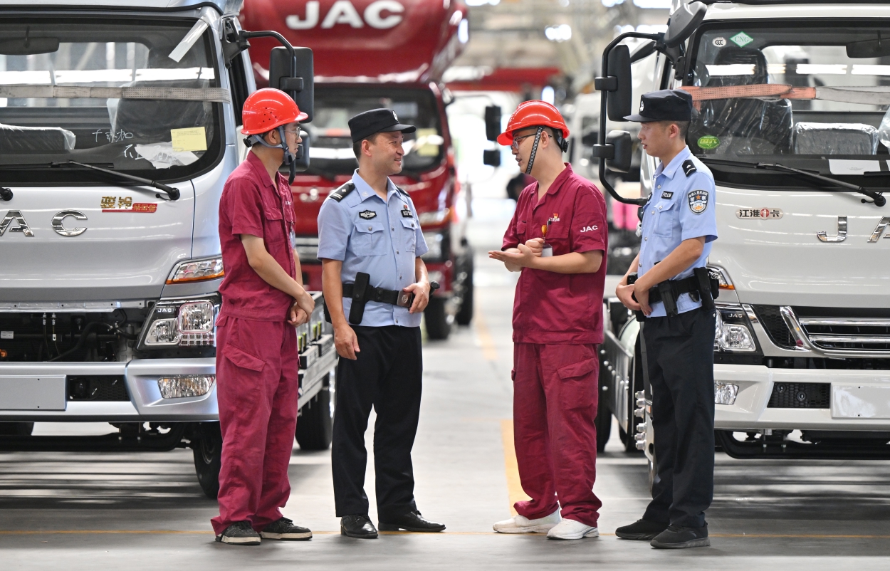 4月17日,安居区首个警务服务中心在江淮汽车公司揭牌运行。分局主动上门了解江淮汽车公司具体困难和实际需求,积极与遂宁市车辆管理所、省公安厅交警总队、无锡科研所等有关部门沟通协调,争取政策支持,帮助企业申请建立服务站专网,申请下放临牌办理权限,在企业资料收集、车辆安检、强制保险购买、互联网办理等方面全流程指导,加速审核办证流程,使得新车出厂申领临牌在厂区内即可办理,确保了临牌快速发放,解决了企业新车出厂运输和试验过程中无法合法上路行驶的燃眉之急。
