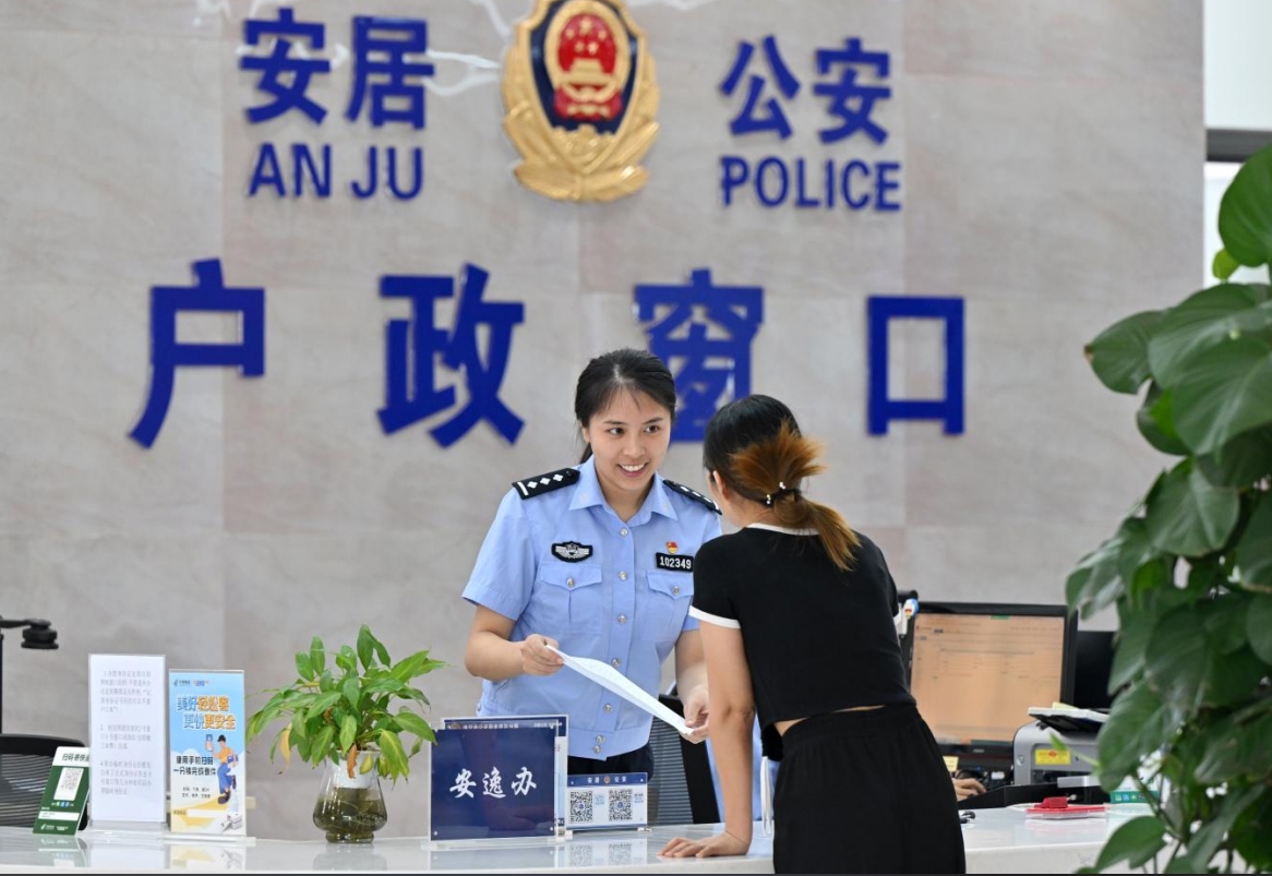 坚持服务民生民需以安业。紧扣“安民居正”核心理念,推动“一心”“两翼”“N触角”政务警务服务体系建设,通过在安居主城区建强一个公安政务服务中心、在拦江镇和磨溪镇建立两个公安政务服务分中心、在辖区N个高校和企业建立警务服务中心,进一步优化“一窗通办”“一网通办”“最多跑一次”等工作机制,打造“安逸办”公安政务服务品牌。