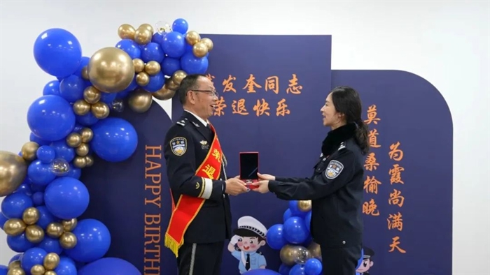 为进一步增强民警从警的职业荣誉感、使命感和归属感,表达对退休民警的崇敬之情,12月20日,成都市公安局新津区分局为政治处民警戴发奎举办了一场温馨的荣誉退休仪式。分局党委委员、政治处主任张玲莉出席荣退仪式,政治处民辅警代表参加仪式。