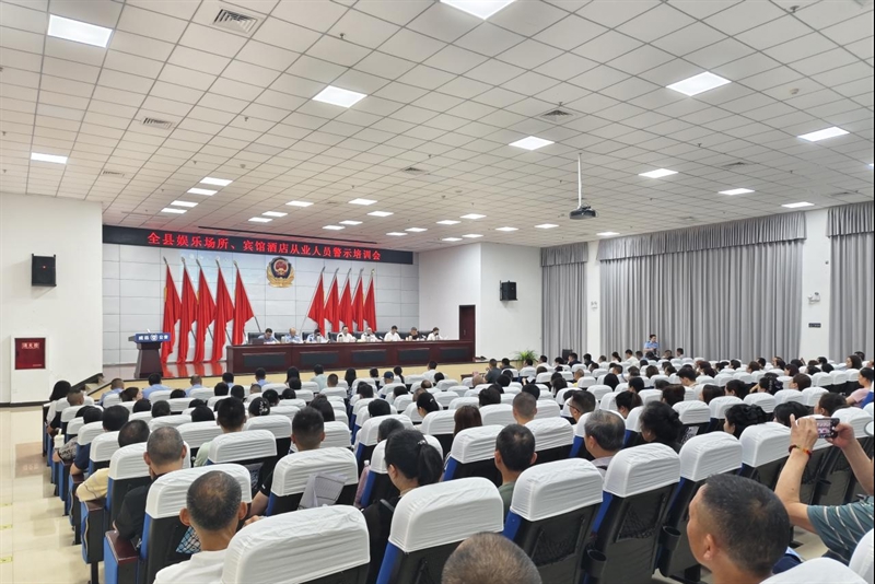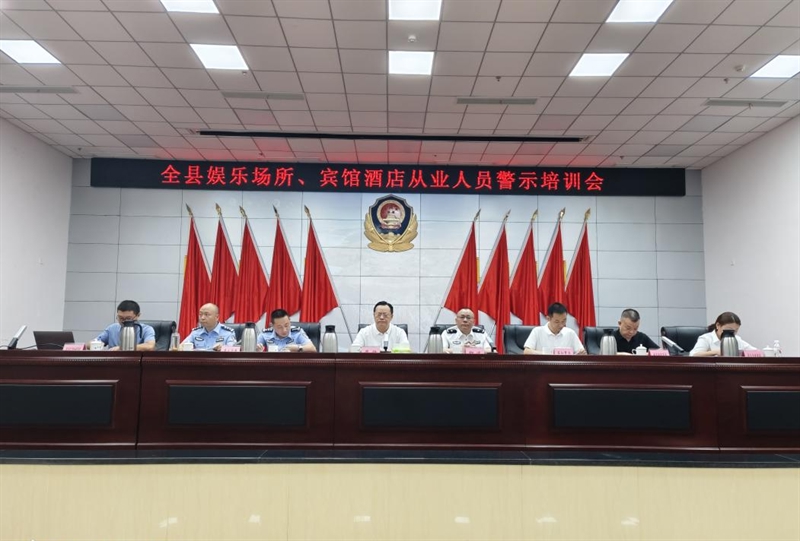 为深入推进未成年人司法保护、常态化扫黑除恶斗争、禁毒防艾、反电诈等工作,依法规范娱乐场所、宾馆酒店经营管理秩序,5月21日上午,威远县召开娱乐场所、宾馆酒店从业人员警示教育培训会议。县委常委、政法委书记廖快出席会议并讲话,县政府副县长、县公安局局长卿波主持会议,相关单位分管负责同志,各镇政法委员及170余家营业场所负责人参加。县公安局、县扫黑办、县文化广电旅游局、县市场监管局、县卫生健康局结合本单位职能职责开展了警示教育培训。
