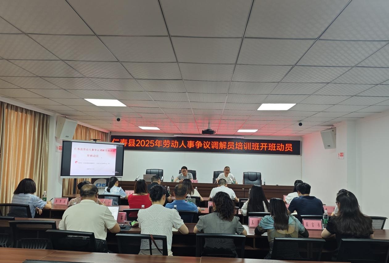 为进一步充实劳动人事争议调解力量,不断提升调解技能,6月12日,仁寿县人力资源和社会保障局仲裁调解股组织开展“强调解研修 育劳关能手”劳动人事争议调解员培训会。会议由县人社局党委书记、局长邱华文同志做开班动员,邀请眉山市劳动人事争议仲裁院院长郑利飞主讲。