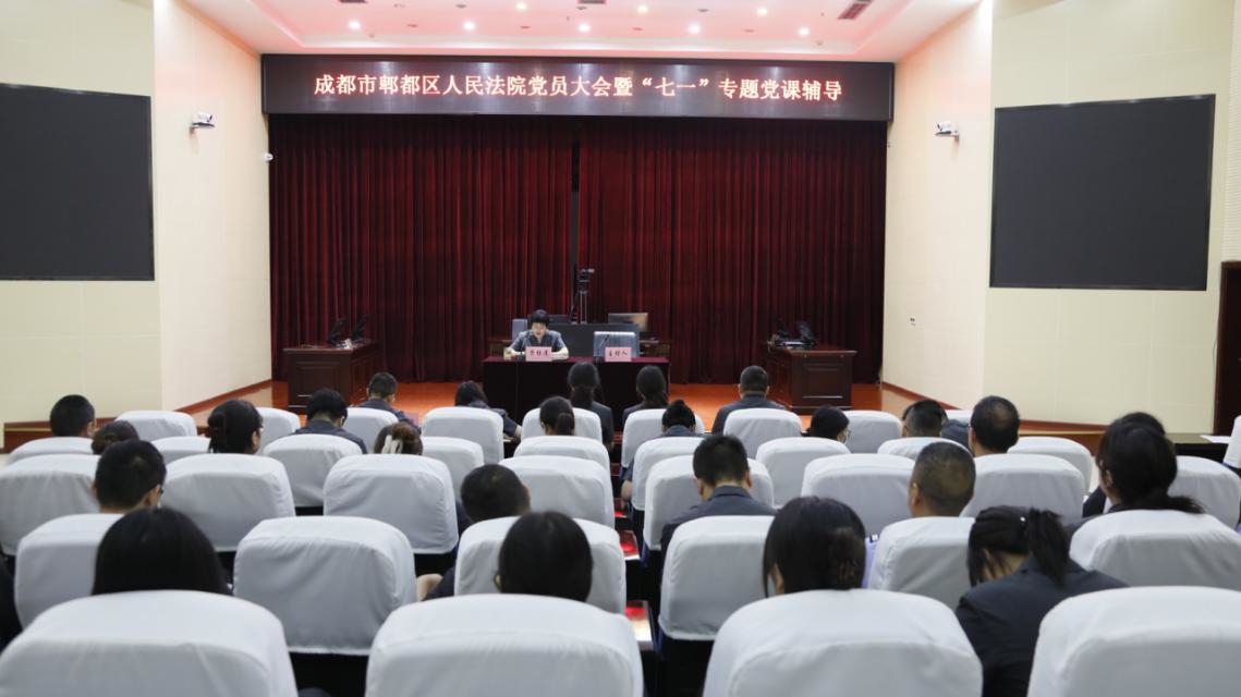 近日,成都市郫都区法院召开党员大会暨“七一”专题党课辅导。