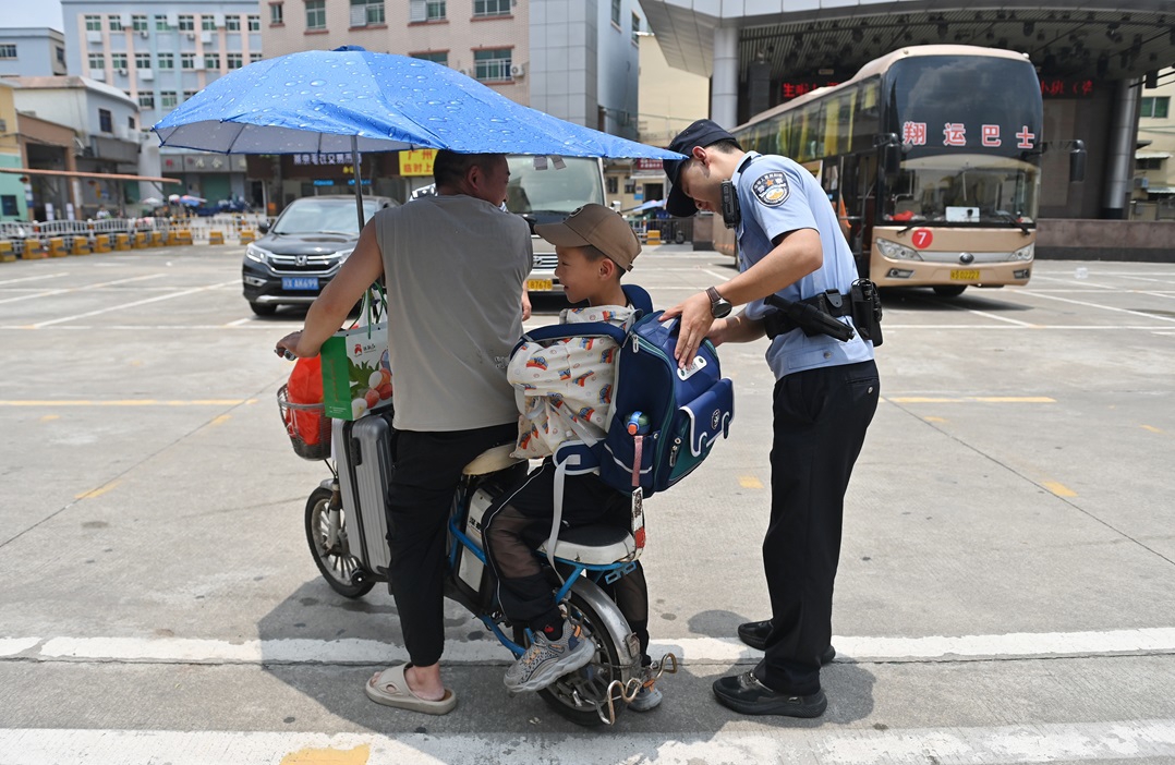 以前每逢暑假,“小候鸟”们会在家中老人的陪伴下或者独自前往大朗镇与父母团聚。为解决留守儿童暑期探亲路途远、安全风险高的难题,2024年7月,前锋公安首次尝试“小候鸟”团圆行动,成功护送127名“小候鸟”平安抵达大朗(2024年7月5日曾报道)。
