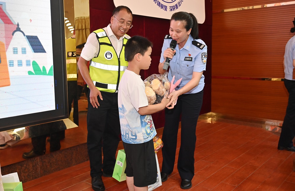 广场上,久别的父母与孩子紧紧相拥,喜悦的泪水与欢笑交织。欢迎仪式温情满满:工作人员为孩子们送上岭南荔枝、饮料、糖果,更特别地是全场为一位小寿星齐唱生日歌。短暂的欢庆后,“落地第一课”随即开讲,大朗公安聚焦防性侵、交通安全、防溺水安全,精心设计趣味问答,孩子们踊跃参与,气氛热烈。课程结束后,家长们拿起行李,牵着孩子的手踏上回家的路。“孩子一路上有医生、志愿者、警察相伴,比我们接还周全,落地欢迎和安全课太贴心了!”家长周先生感慨道。
