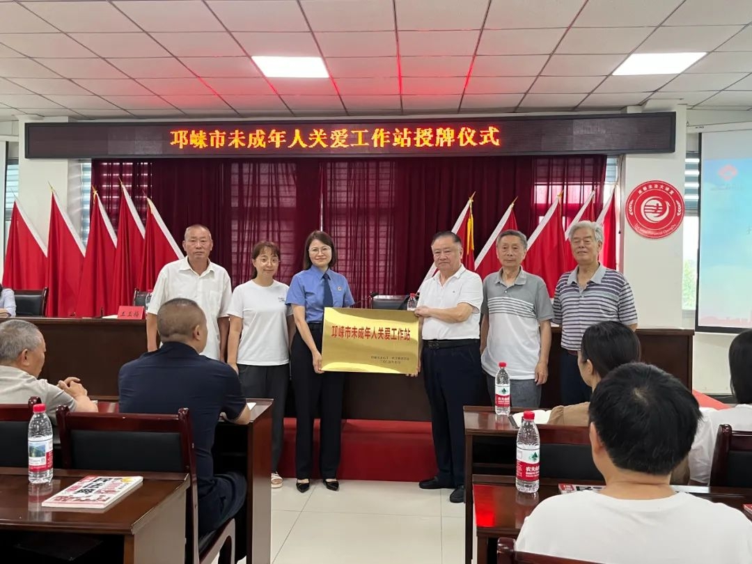 活动开始,邛崃市关工委执行主任李怀忠宣布在“和枫”工作室大同工作站设立“未成年人关爱工作站”并授牌。该工作站的设立旨在整合资源,拓展“和枫”工作室功能,深化基层法治服务,推动未成年人保护和关心下一代工作迈上新台阶,助力邛崃市未成年人保护示范县工作走深走实。