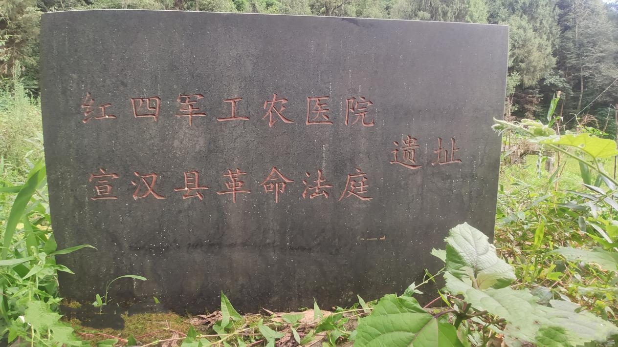 最后,队伍深一脚浅一脚踩过田坎,终于来到宣汉县革命法庭旧址,只憾旧屋唯剩淤泥杂草之下石砖与默默不语的纪念碑。在巍峨巴山深处的纪念碑前久久驻留,真切感受当年红军在极其艰苦条件下开展革命斗争的艰辛与坚持。