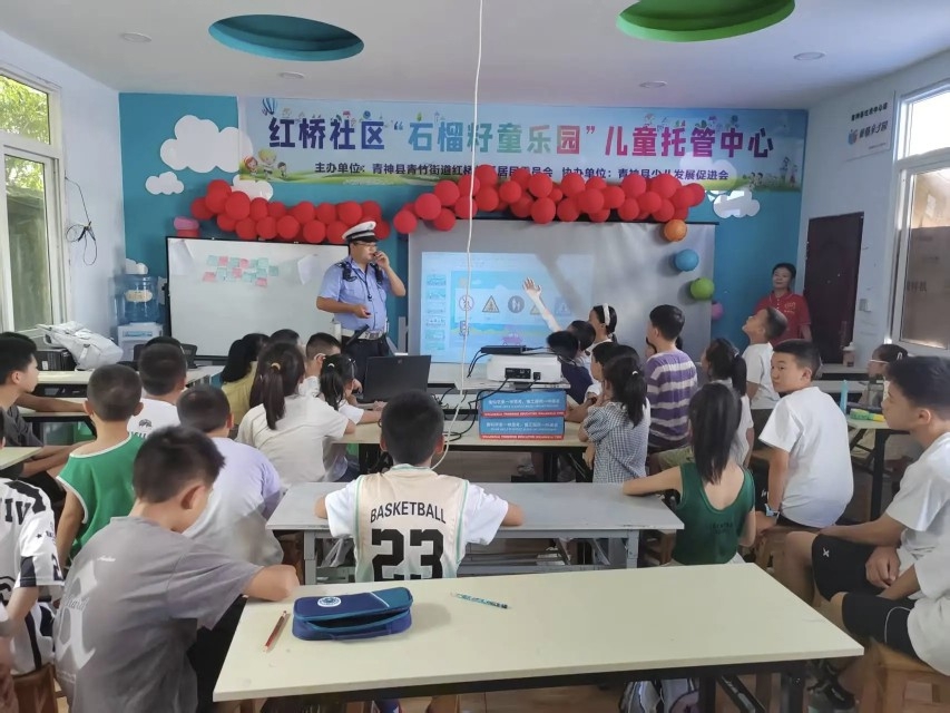 活动前,民警先来到托管班用通俗易懂的语言讲解了红绿灯、斑马线等交通设施的作用,重点强调了步行时“一停二看三通过”、乘坐私家车需系好安全带、搭乘电瓶车佩戴好安全头盔等安全要点。通过播放警示片、现场提问互动、发放宣传资料等形式,让孩子们掌握交通安全知识。