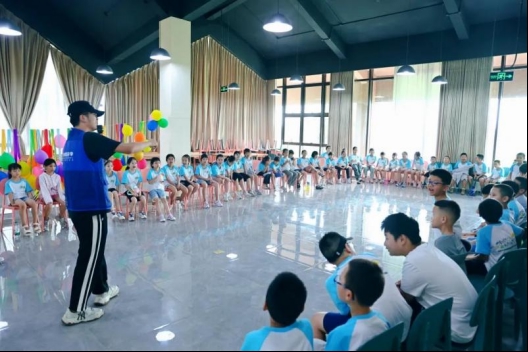 在开营仪式上,工作人员与孩子们亲切互动,和他们一起游戏、合影,欢笑声此起彼伏。孩子们一句句“叔叔阿姨,来和我们一起玩呀”,拉近了彼此的距离,洋溢着童真的热情。精彩的魔术秀、梦幻的气球表演、充满趣味的破冰游戏轮番登场,点燃了孩子们的热情,也为这个不一样的暑假托管拉开了欢乐帷幕。