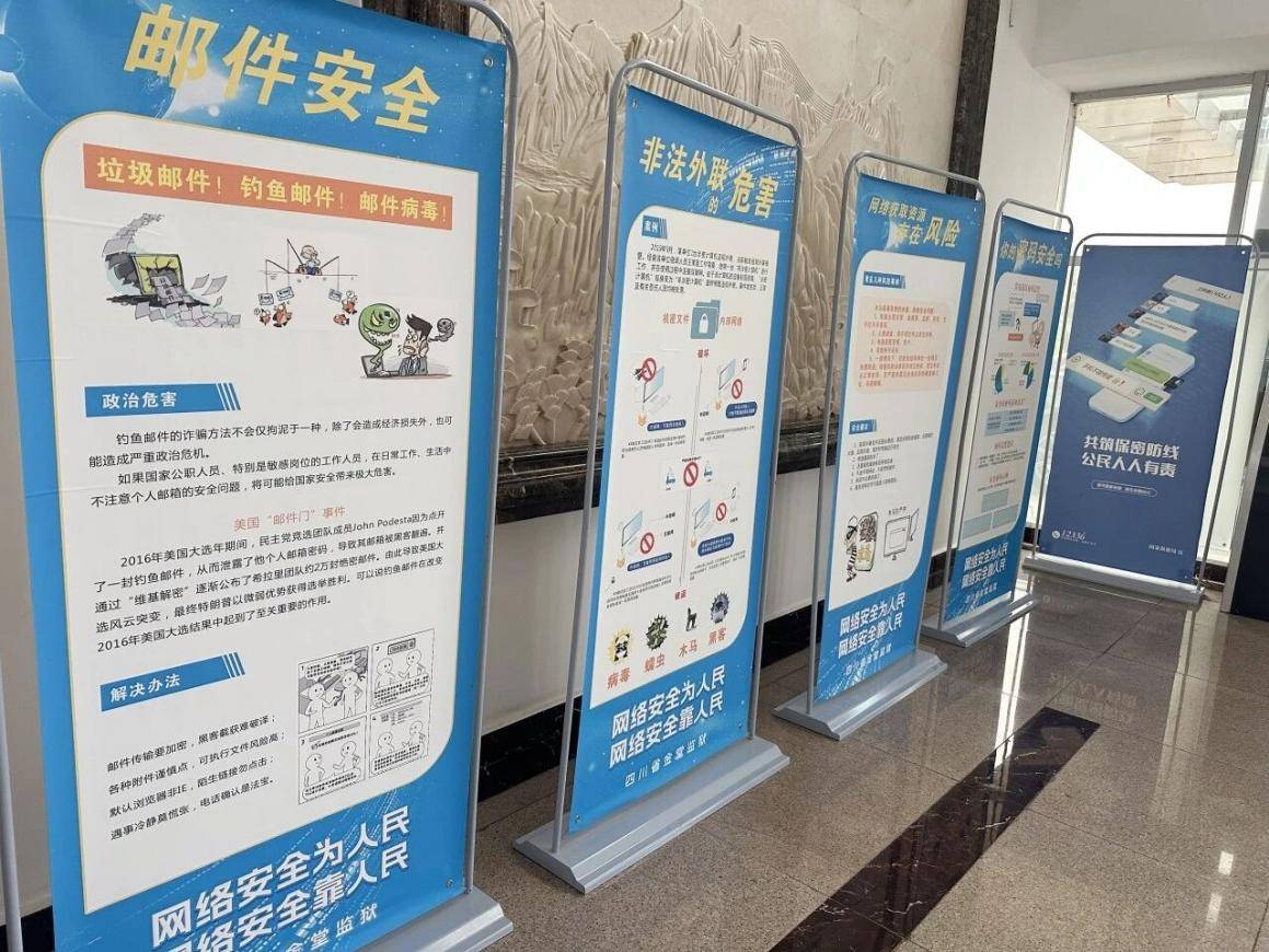 在国家网络安全宣传周期间,金堂监狱还利用多媒体大屏、展板、易拉宝等载体挂图、挂屏宣传《中华人民共和国网络安全法》《中华人民共和国数据安全法》《中华人民共和国个人信息保护法》等法律法规,普及网络安全知识和防护技能,在全狱营造“人人知晓、全员参与、共保安全”的网络安全宣传和学习氛围。