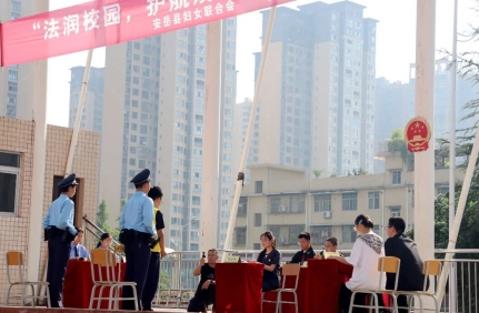 为全面深化法校共建,预防未成年人犯罪,护航青少年身心健康,9月至10月,安岳县法院将联合县妇联、县教体局在安岳中学、安岳启明九年制学校、龙台初级中学等7所学校集中开展全安岳县中小学模拟法庭活动。9月15日上午,活动在安岳中学正式启动,县法院、县妇联、县教体局相关领导出席活动,安岳中学全体师生及家长代表共计5000余人参加活动。