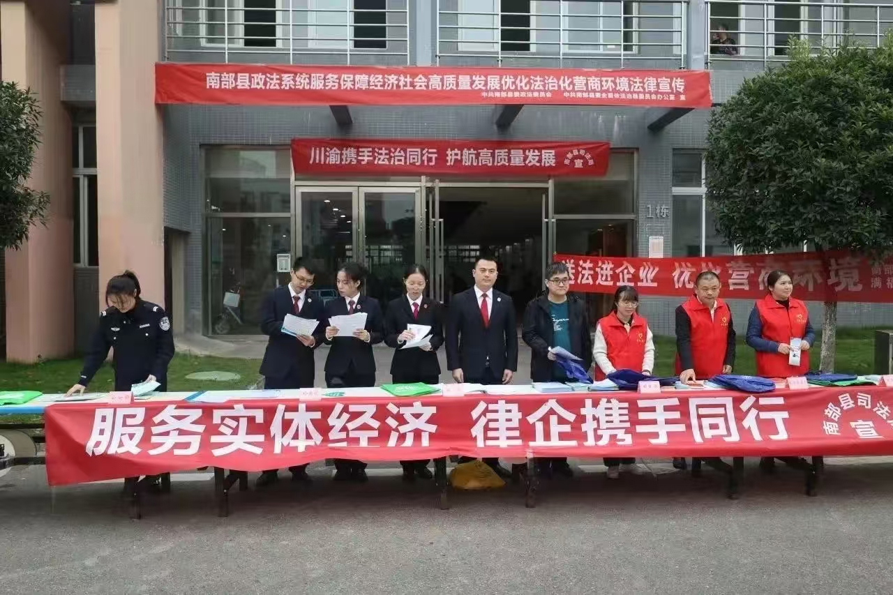 “近年来,南部县委政法委不断聚焦企业痛点、堵点、难点问题,扎实组织政法各单位开展‘助企纾困十大行动’‘我为民企办实事解难事’等专题活动,以更高标准、更实举措落实优化营商环境各项任务,为全县经济高质量发展提供坚实法治保障。”南部县委政法委常务副书记何彬说。