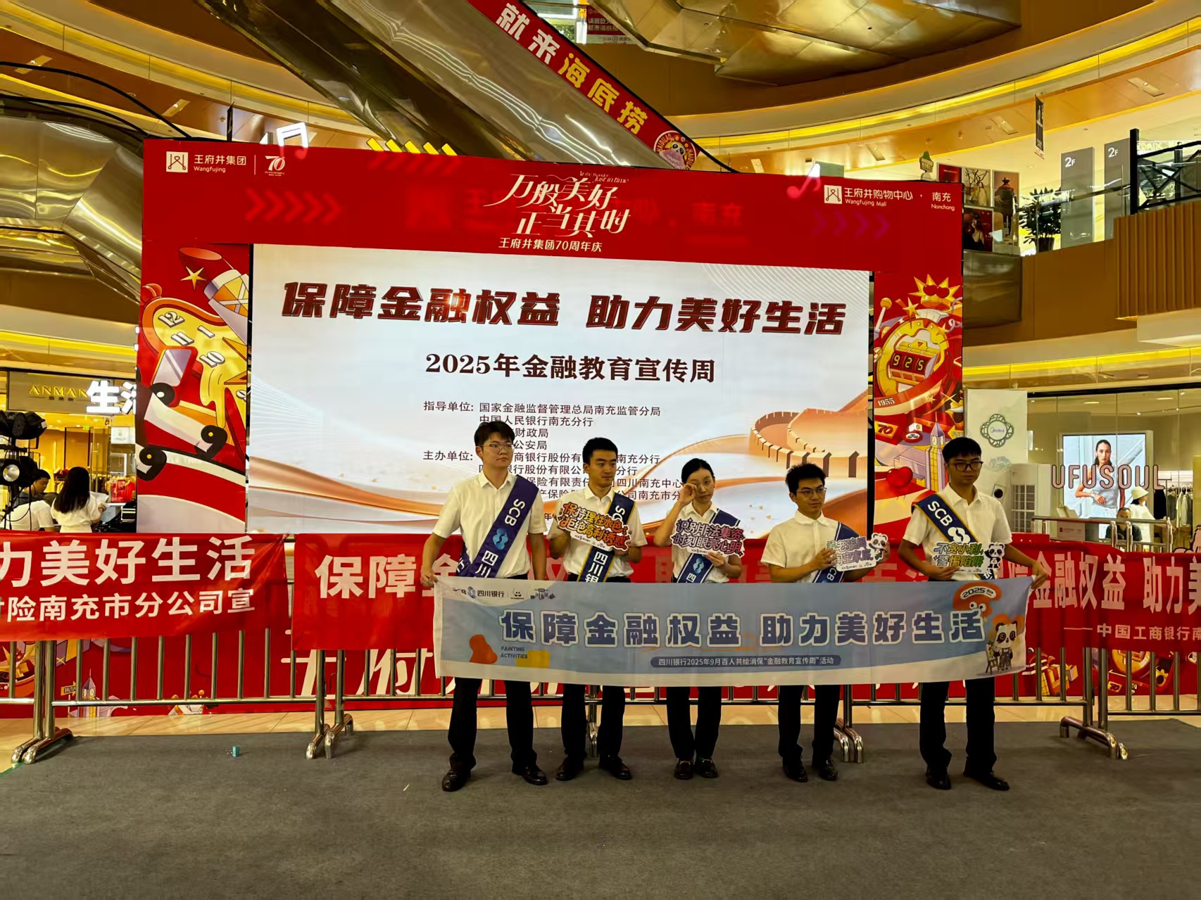 9月17日下午,由国家金融监督管理总局南充监管分局,中国人民银行南充分行,南充市财政局,南充市公安局指导,中国工商银行股份有限公司南充分行,四川银行股份有限公司南充分行,泰康人寿保险有限责任公司四川南充中心支公司,中国人民财产保险股份有限公司南充市分公司等多家机构联合主办的2025年“保障金融权益.助力美好生活”的金融教育宣传周在南充高坪王府井购物大厅启幕。