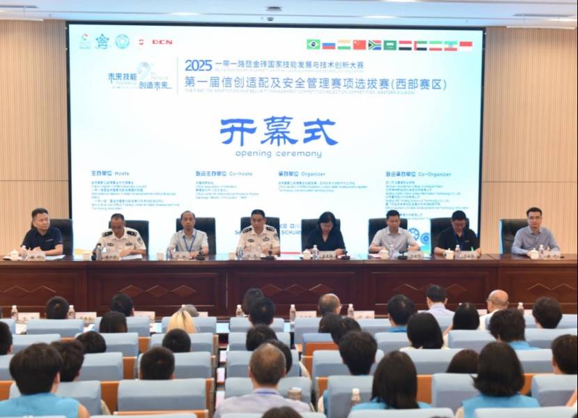 9月18日,2025年“一带一路”暨金砖国家技能发展与技术创新大赛之第一届信创适配及安全管理赛项选拔赛(西部赛区)”开幕式在四川司法警官职业学院举行。来自四川、甘肃、陕西、贵州、重庆的35所院校、55支参赛队伍、170余名选手齐聚德阳,尽展风采。