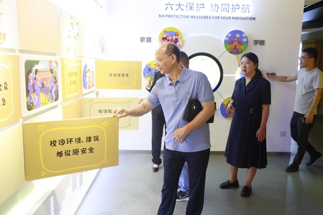 钟晓华一行参观了未成年人检察中心暨青少年法治教育基地,了解了“一站式”办案区、心理疏导室、家庭教育指导室、身体检查室、听证宣告室、模拟法庭等主要功能区的建设情况。乐至县检察院党组成员、副检察长郭秀娟结合该院“未检侠·萤火虫”未检品牌理念,介绍了未成年人检察中心的机制建设、运行成效等情况。