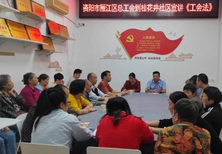 9月23日,据资阳市雁江区总工会通报,为进一步增强社区群众的法律意识,该工会党组成员、办公室主任李小林一行,走进桂花井社区开展《工会法》专题宣讲活动,社区职工及居民代表积极参与。