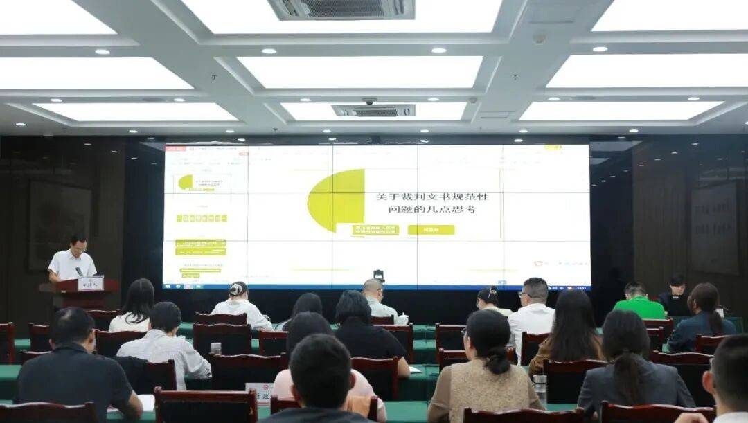 为进一步规范全市法院裁判文书写作,加强裁判文书释法明理,深入落实司法责任制,切实提升全市两级法院干警裁判文书撰写能力,9月23日,遂宁市中级人民法院举办2025年第10期“廌宁·睿研”专家讲堂,邀请省高院审管办三级高级法官何美琪同志就裁判文书写作规范开展专题讲座。