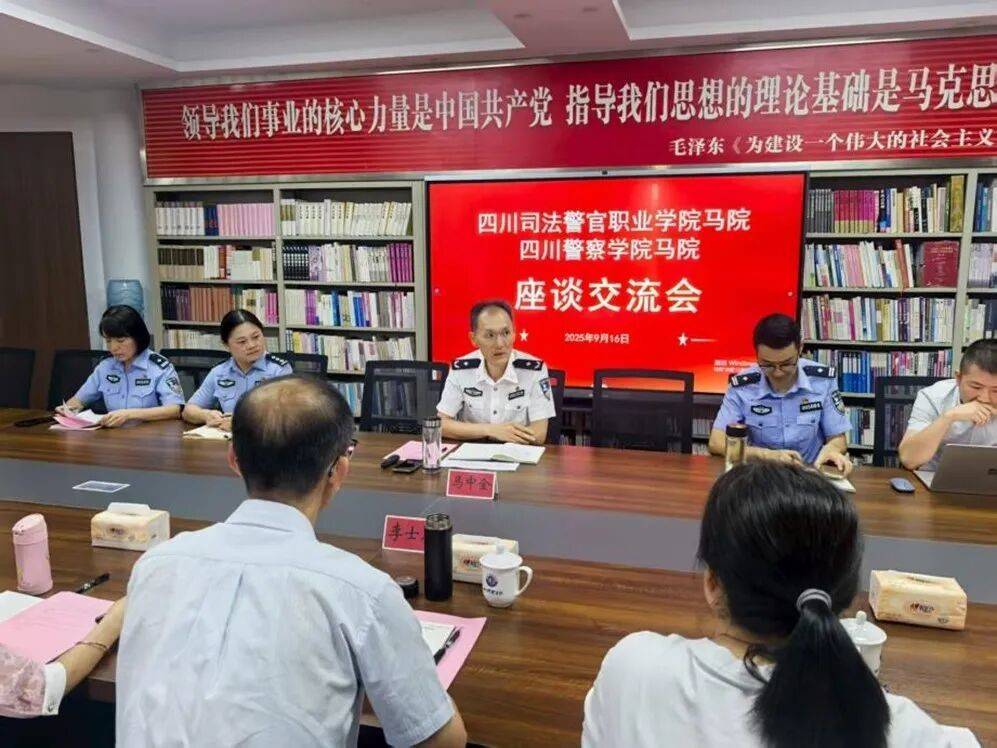 座谈交流会上,四川警察学院马克思主义学院党支部书记、院长、教授马中全围绕将公安特色融入马克思主义学院建设、构建具有警察院校特色的思政课程体系等内容作了经验分享。李士虎简要介绍了四川司法警官职业学院在马院建设、思政课教学改革、师资队伍建设及特色亮点方面的实践与探索。四川警察学院副院长李红艳、相关教研室负责人以及四川司法警官职业学院的教师参加了座谈。双方还就马克思主义学院建设、思政课程改革创新等共同关注的议题进行了深入交流。