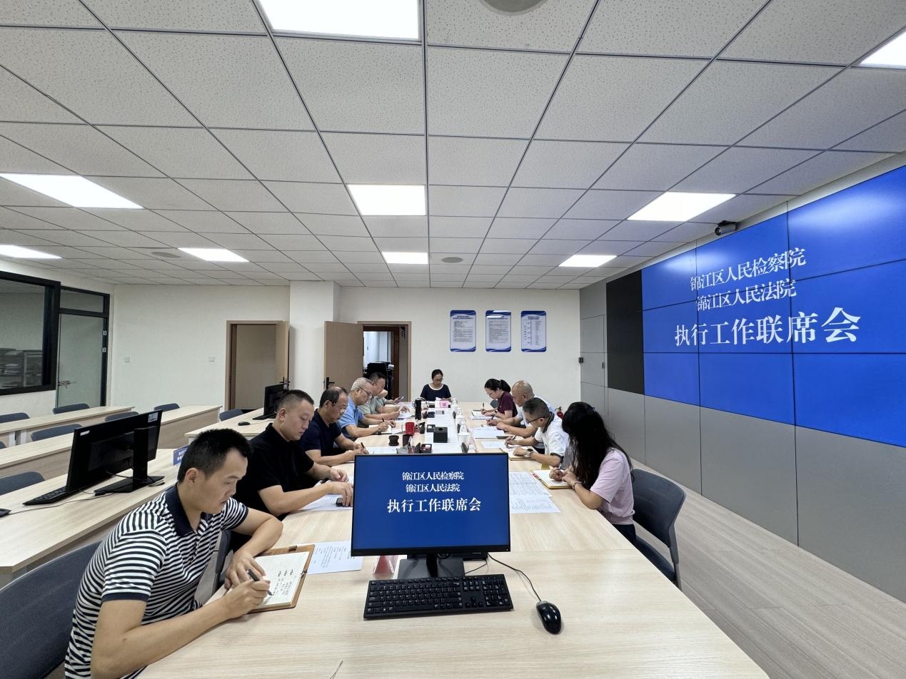 近日,成都市锦江区法院与检察院联合召开执行与法律监督工作联席会,解决法检两家在执行工作中的协作配合问题,以此凝聚司法合力,切实提升执行工作质效与检察监督水平,共同破解执行难题,维护司法权威和公信力。