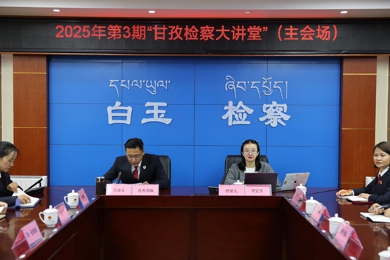 近日,第3期“甘孜检察大讲堂”开讲,提升全州检察人员业务能力,推动职务犯罪检察工作高质量发展。会议由白玉县检察院党组书记、检察长扎西邓珠主持。检察大讲堂特邀了四川农业大学法学院吴宜男教授作《监检衔接视角下的职务犯罪案件:提前介入的要点与实务》专题辅导,全州检察系统相关人员聆听授课。