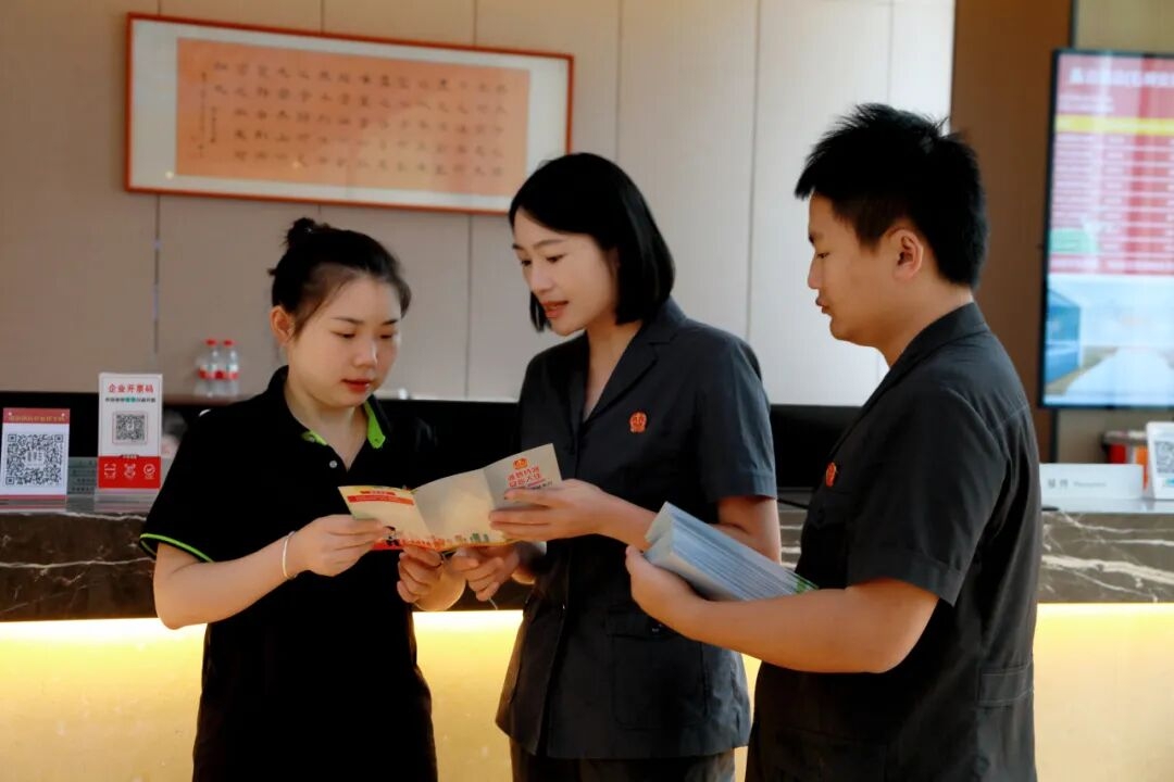 普法宣传,全面覆盖。精心编制文旅行业普法宣传手册,内容涵盖了景区安全管理、商家诚信经营、酒店民宿服务规范及旅游者权益保护等重点内容。法庭负责人巨敏一行先后走访王岗坪和安顺场等旅游热门景区,结合旅游服务合同、旅游意外伤害风险防范等内容,为辖区内管委会、酒店民宿经营者、旅游服务企业、游客发放风险提示函、守法倡议书及出行指南等。同时,干警们与景区工作人员、游客等进行面对面沟通交流,倾听他们在景区管理、运营、游玩中遇到的问题和需求,针对性提出法律意见和解决方案。