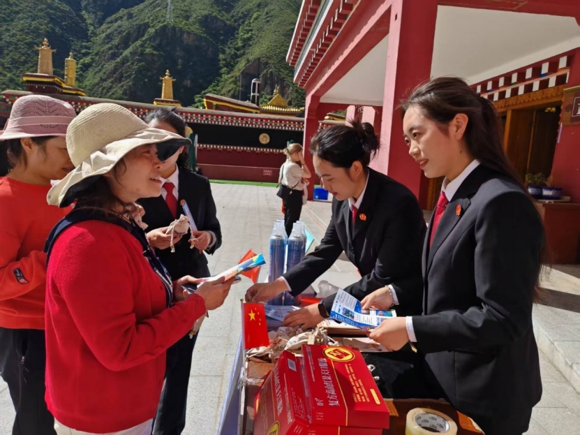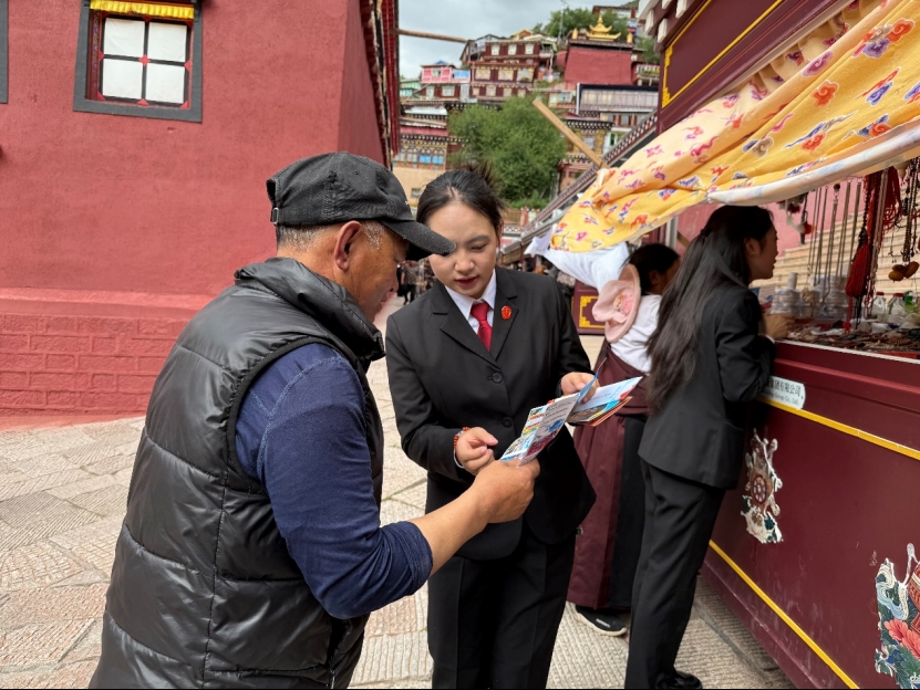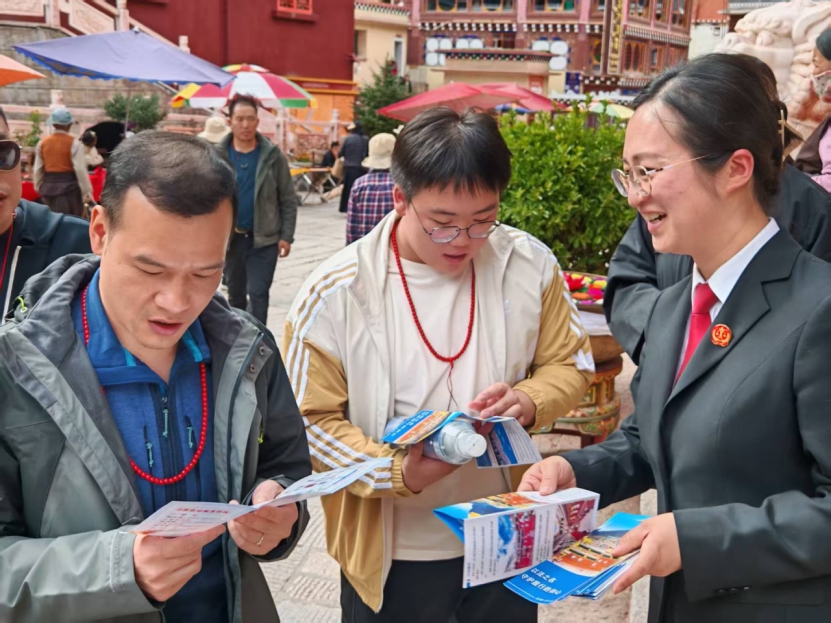 “出来玩就怕遇到麻烦事,现在景区里有法院的人帮忙,心里踏实多了。”一位来自山西的游客一边接过干警手中的普法折页,一边感慨来德格享受到了高品质的服务体验。