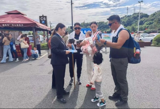 期间,普法小分队们还化身景区服务志愿者,协助景区工作人员疏导人流、指引路线,引导游客有秩序地排队购票、上车,为有需要的游客提供暖心帮助。