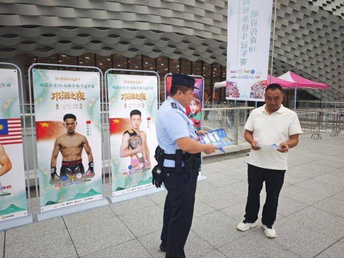 国庆佳节期间,为提升辖区群众学法、尊法、守法的良好法治意识,提高群众对新修订法律法规的知晓率,以及提升反诈防骗意识,10月7日晚,邛崃市公安局法制大队民辅警依托在邛崃市体育馆成功举办的“峨眉传奇50•高棉拳格斗冠军赛——邛酒之夜”赛事活动,开展围绕新修订的《治安管理处罚法》、反诈防骗为主题的普法宣传活动。