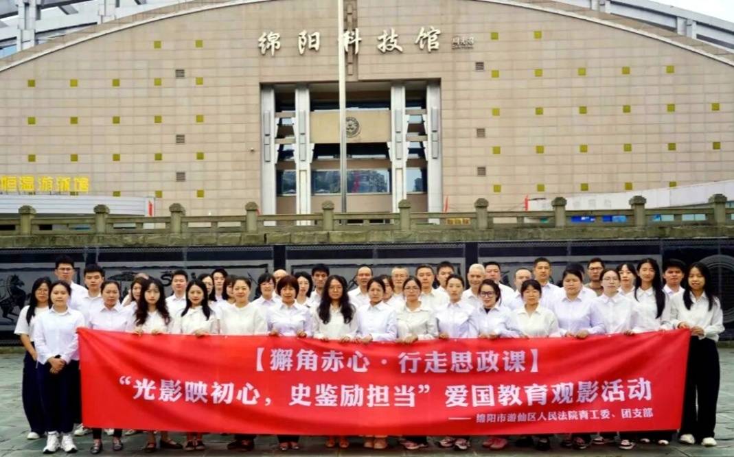 近日,绵阳市游仙区法院青工委、团支部联合组织全院干警走进绵阳科技馆,开展爱国教育观影活动,纪念中华人民共和国成立76周年,引导干警铭记历史、勿忘国耻,砥砺思想“锋锐”,激发爱国“赤诚”。