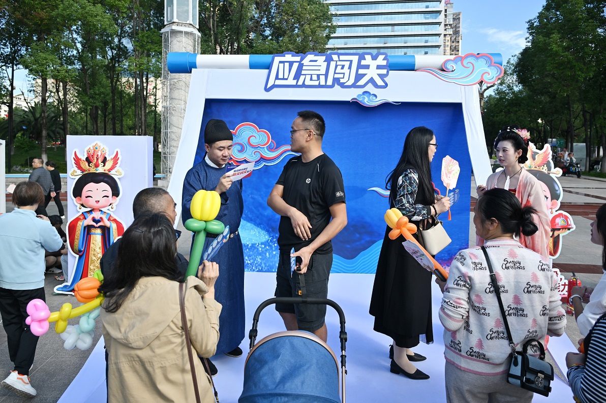 记者在活动现场看到,现场还设置了12个应急科普互动区,包括实战训练营、“则天智慧・减灾锦囊”趣味答题区、应急救援设备展示区等,内容丰富、形式多样。