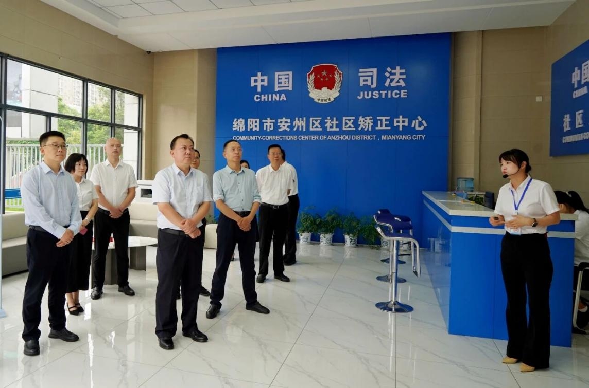 近日,省司法厅党委书记、厅长李丹带队到绵阳市调研司法行政工作,先后到绵阳市安州区花荄司法所、花荄镇综治中心和绵阳市司法局,实地调研行政争议化解、复调对接、司法所入驻综治中心、公共法律服务、行政执法考试培训等工作情况。