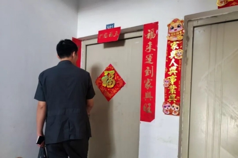 3日,申请执行人侯某来电,称其发现被执行人雷某在家,请求出警。值班干警核实相关情况后立即赶往雷某家中,敲门无人应答,但干警在其院内发现其名下尚未控制的两辆机动车,由于车上还有其他设备,无法直接扣押,于是依法在车辆上张贴封条,并电话告知双方当事人相关情况,雷某表示自己目前在外地,双方当事人协商节后一起到法院处理。
