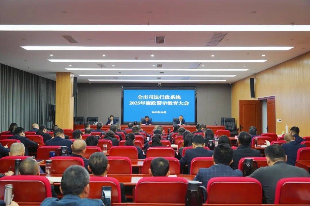 10月21日下午,遂宁市司法局组织召开全市司法行政系统2025年廉政警示教育大会。遂宁市司法局党组书记、局长李静波主持会议并讲话,市、县两级司法局全体班子成员、全体干部职工共计200余人通过现场及视频形式参会。