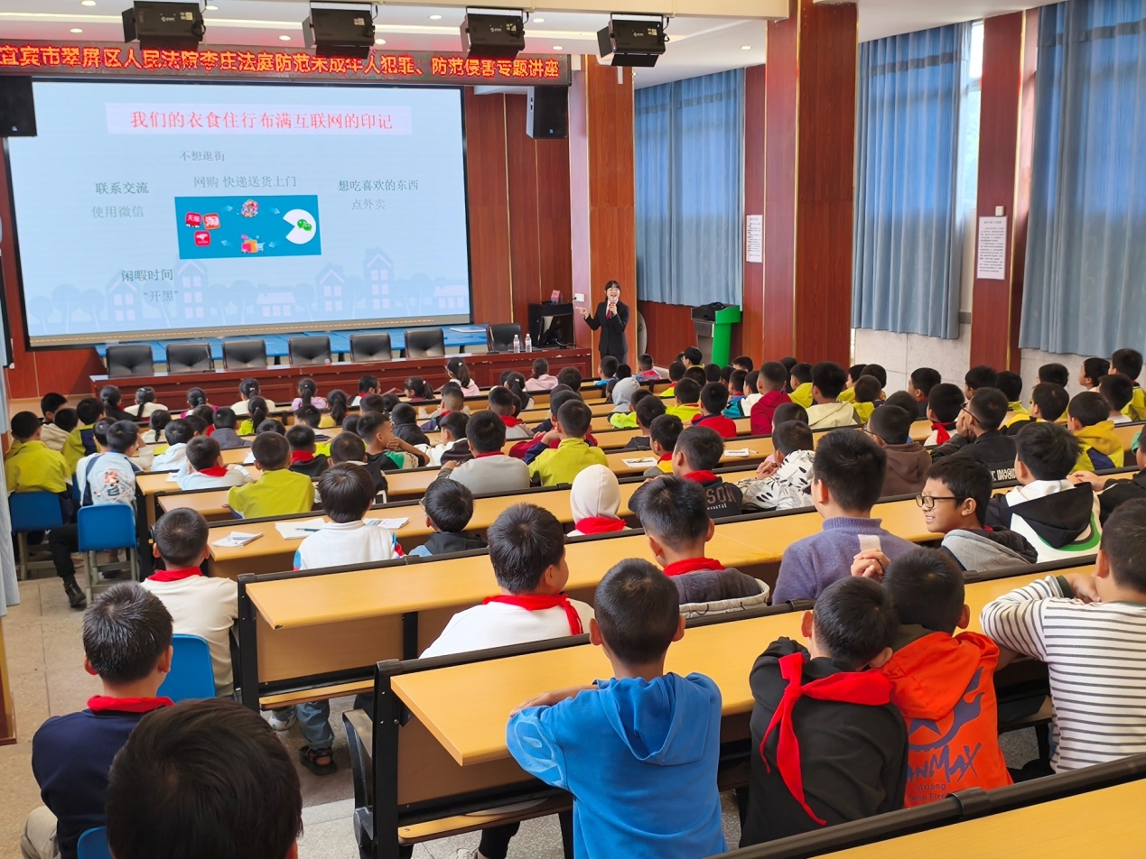 “你会在网上结交朋友吗?”“什么是校园欺凌?”“如何提高视觉、言语、触碰、独处、约束五大警惕?”在当天的法治教育课堂上,法官针对未成年人身心特点与日常学习生活中的常见风险,采用“短视频+图文讲解+互动问答”模式,围绕网络诈骗识别、校园欺凌应对、人身安全防护等内容展开讲解,结合典型案例阐释法律知识,引导学生们认清针对未成年人的常见犯罪类型和手段,掌握自我保护的技巧,自觉远离违法犯罪,树立尊法学法守法用法的意识。