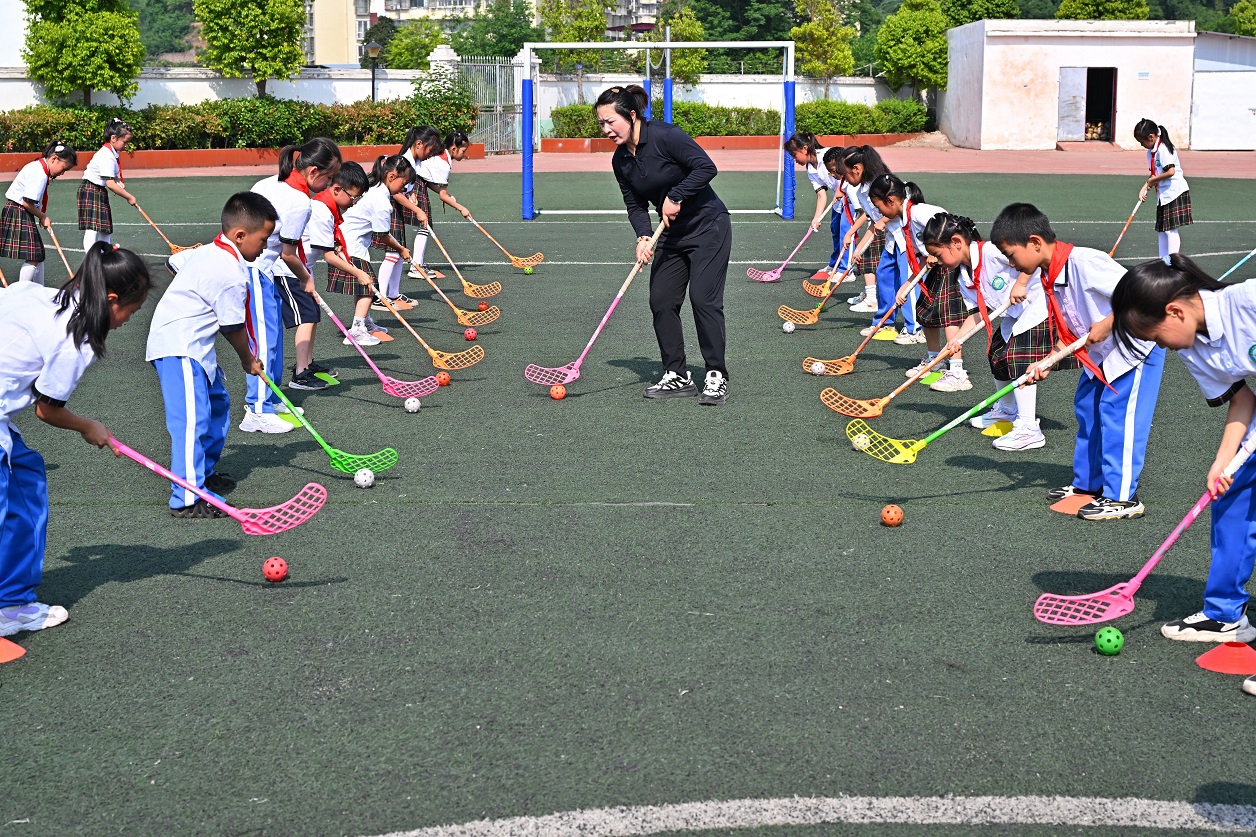 在仁寿县文宫小学的绿茵场上,曲棍球课程开展得如火如荼。学生们在教练指导下专注地练习握杆、控球、传球与射门。“曲棍球很有趣,对身体也好,比赛获奖让我特别有成就感。”学生曹梓萌说。副校长刘鑫茂表示,曲棍球课程是学校推进素质教育、促进体教融合的生动实践,旨在让学生在运动中释放压力、增强体质,培养合作与竞争精神。
