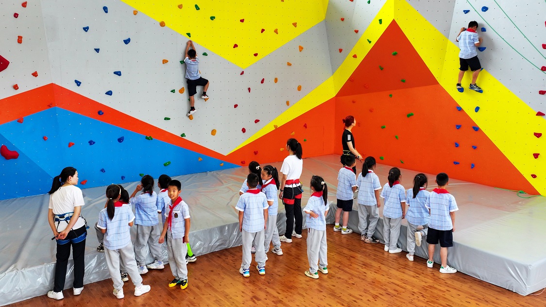 仁寿县文缜小学依托全县首个校内攀岩馆,带学生体验“岩壁芭蕾”的魅力。“攀岩要手脚协调,很累,但我战胜了恐高。”学生彭璟在挑战中收获了勇气。教师徐建英介绍,攀岩能锻炼学生的肌肉、心肺功能和协调能力,更能激发他们克服恐惧、挑战自我的精神。校长张俊清表示,学校已开设曲棍球、军体拳、科创实验等多门特色课程,致力于培养心理健康、意志坚强、志趣优雅的文缜少年。